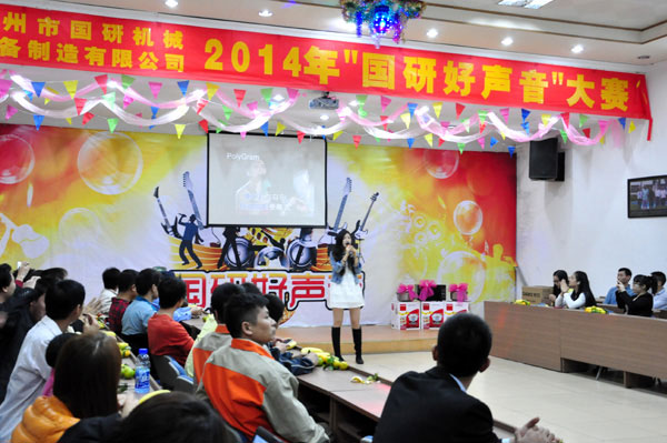 11月17日晚,在广州市国研机械设备制造有限公司的多功能会议厅洋溢着一派节日的气氛,员工们个个兴高采烈一扫往日的疲惫,大家期待已久的“国研好声音”决赛正在如火如荼地紧张进行着。选手们的精彩演唱高潮迭起,让赛场上的掌声雷动。那些平时默默无语工作在生产一线的员工在比赛中都展示了他们积极向上乐观进取的生活态度,迸发出了精彩的演出。选手们经过2个多小时的激烈角逐,评委根据各个选手的音准、音色、音调等多项的综合因素公平打分,评选出大赛的各个奖项。