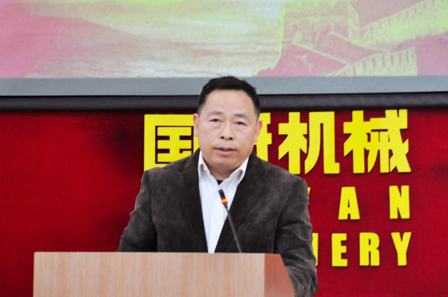 国研机械董事长兼总经理王声位在会上作了重要讲话。展望了公司发展前景,要求公司全体在新的一年里要融入互联网+新业态,着眼产品自动化智能化,朝着工业4.0方向发展;要继续发挥创业平台的作用,开发更多创富项目,满足市场需要;要继续横向发展,打造更多如广州健力食品机械有限公司这样的行业寡头企业。王声位提出了2016年公司要着重落实大众创新、产品质量、客户服务、人才培养、电子商务五大工作目标。他还要求国研机械进一步加强企业文化建设,强化以利他之心为本的经营理念,提出了“不赚快钱,不谋暴利,注重品质”的经营准则。